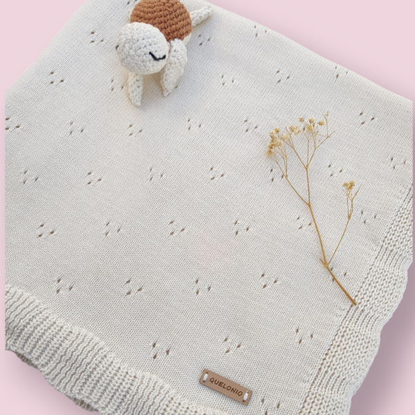Nuestra hermosa manta está confeccionada en hilo de algodón de excelente calidad, con un delicado diseño que la convierte en el complemento perfecto para acompañar a tu bebé en todo momento.Fresca y súper cómoda, es ideal para la temporada primavera-verano, brindando abrigo sin perder suavidad.