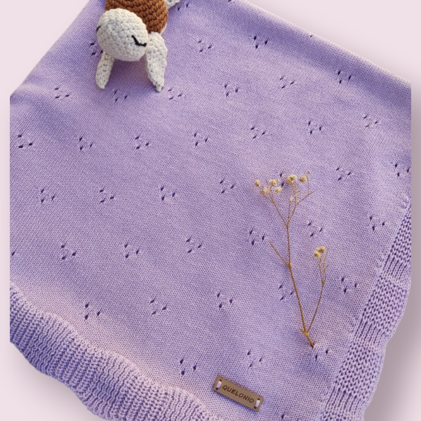 Nuestra hermosa manta está confeccionada en hilo de algodón de excelente calidad, con un delicado diseño que la convierte en el complemento perfecto para acompañar a tu bebé en todo momento.Fresca y súper cómoda, es ideal para la temporada primavera-verano, brindando abrigo sin perder suavidad.
