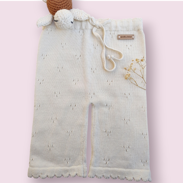 ✨ Pantaloncito tejido con delicado diseño calado, ideal para acompañar los looks más dulces y cómodos de tu bebé 🧸.